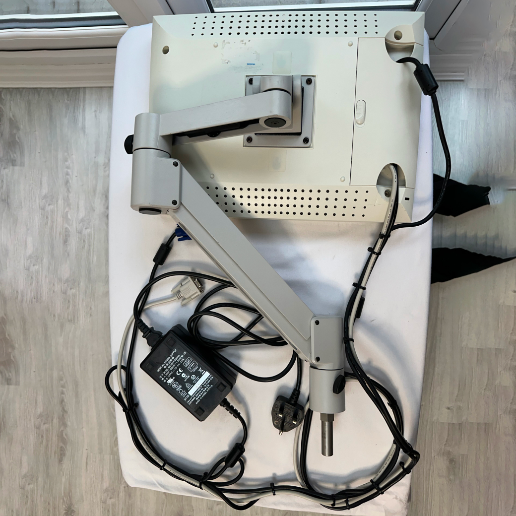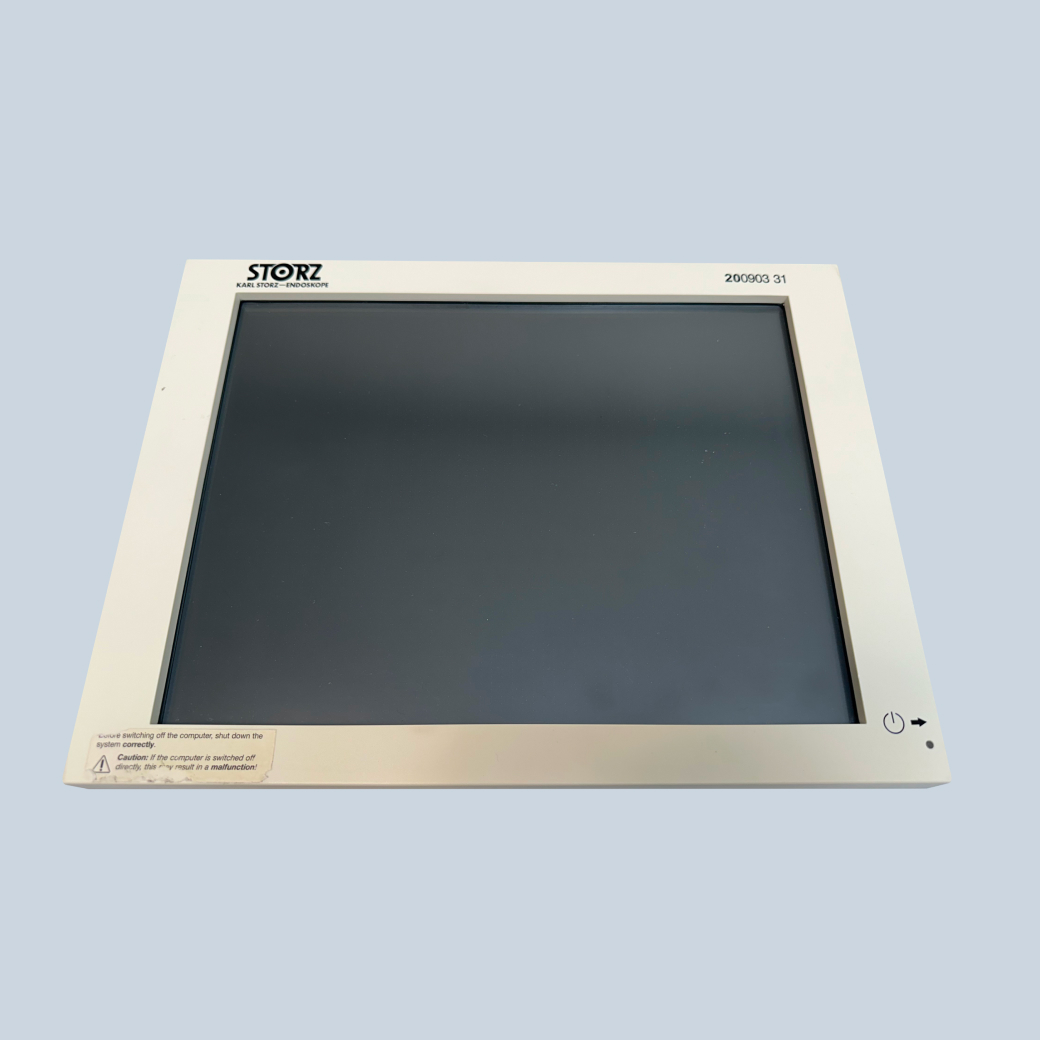 The Karl Storz-Endoskope 20090331 is a 19-inch touchscreen monitor designed for medical imaging, providing high-quality visuals for diagnostic and surgical procedures. It includes a power supply, ensuring continuous operation. The intuitive touchscreen interface simplifies navigation and allows for quick adjustments during surgeries. This monitor is often used in conjunction with endoscopic and other medical equipment to improve patient care.