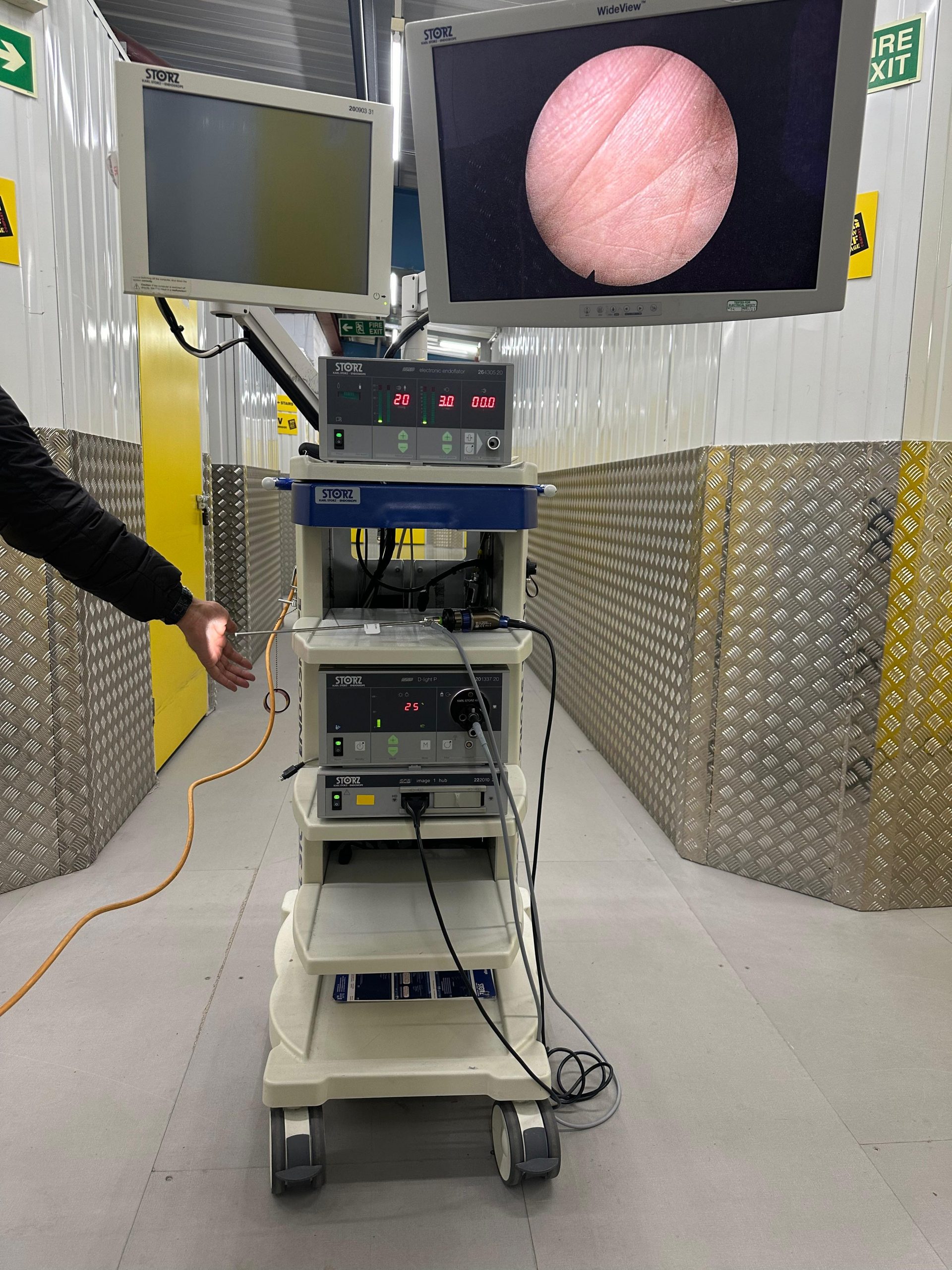 Note: The Original Karl Storz customised trolley shown in the photos is not included in the listed price but is available separately. Trolley shipping is not included. Please email or message for a shipping quote.