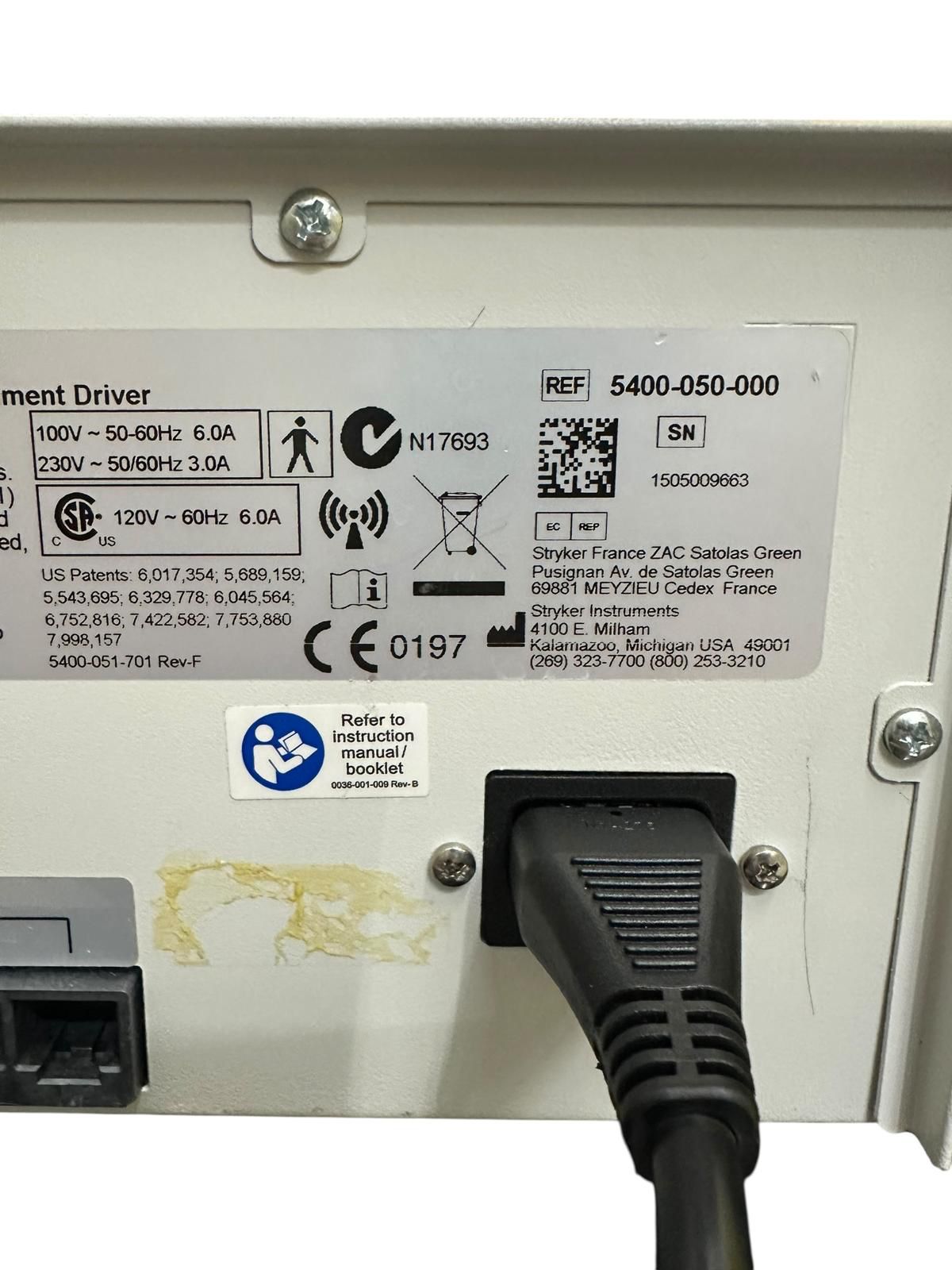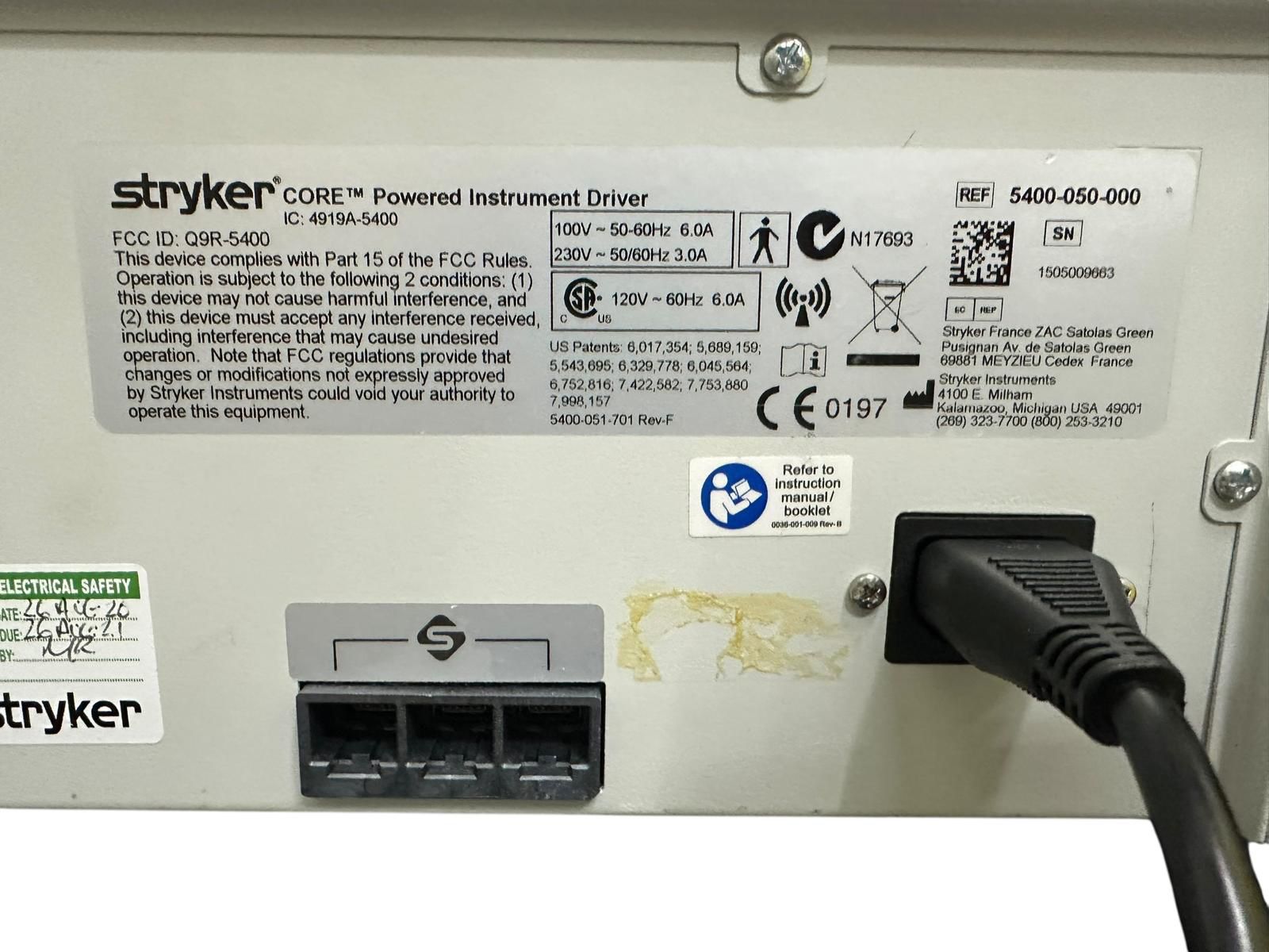 • Stryker CORE Powered Instrument Driver (Ref: 5400-050-000, SN: 1505099663)